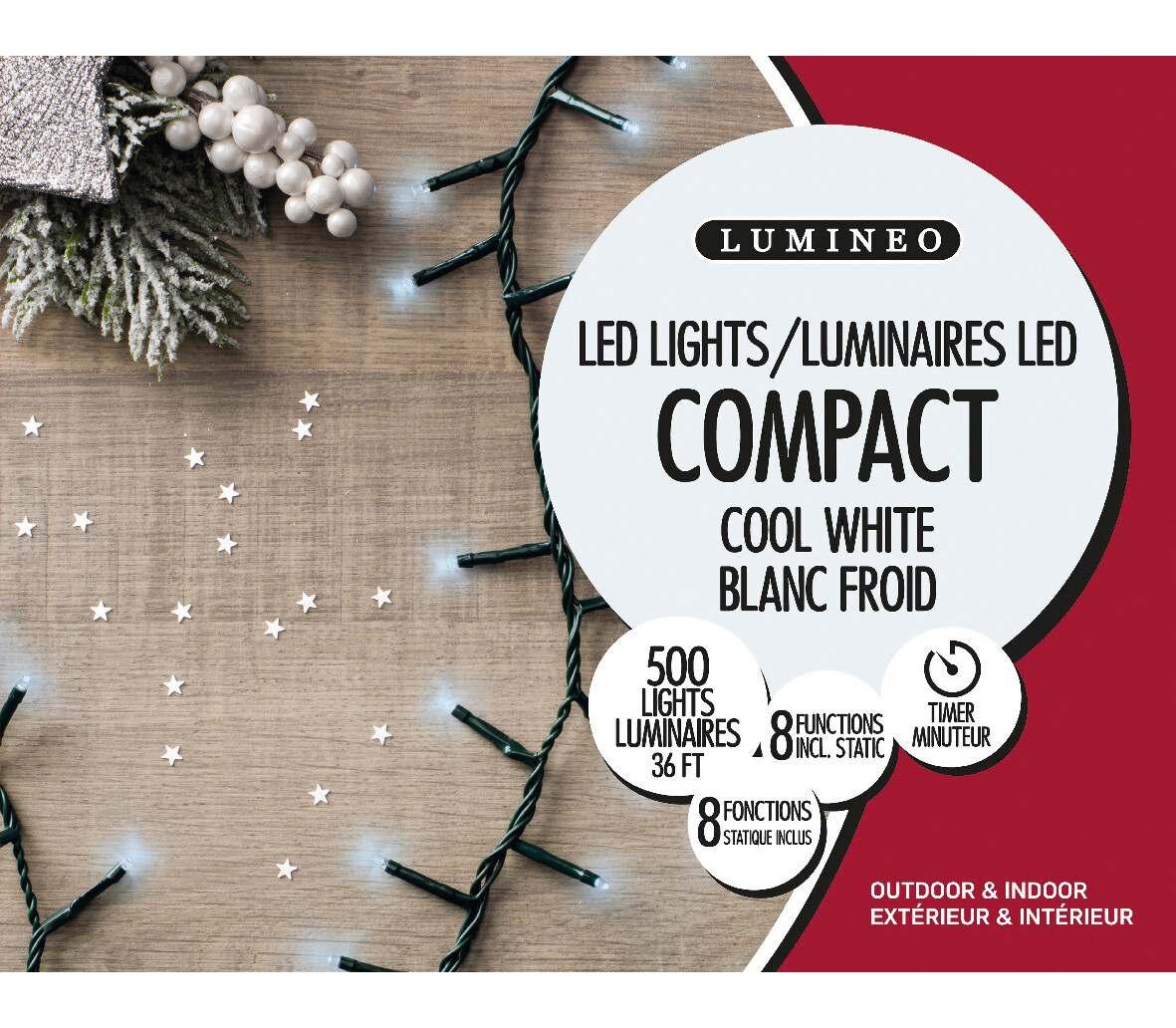 Lumières Extérieures DEL Riz 500 lumières (avec minuterie et 8 fonctions) 36' Blanc froid