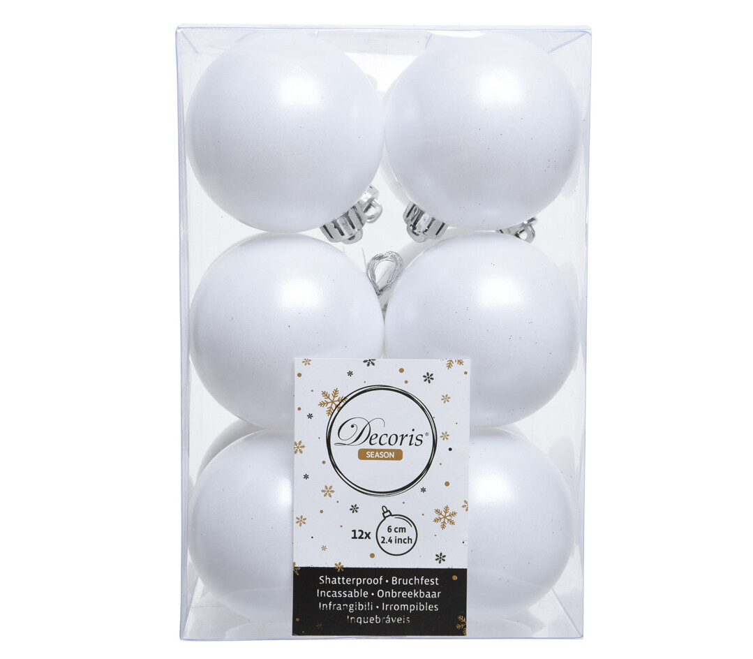 Boule en plastique 6 cm (Brillant - Mat) (Paquet de 12) Blanc d'hiver