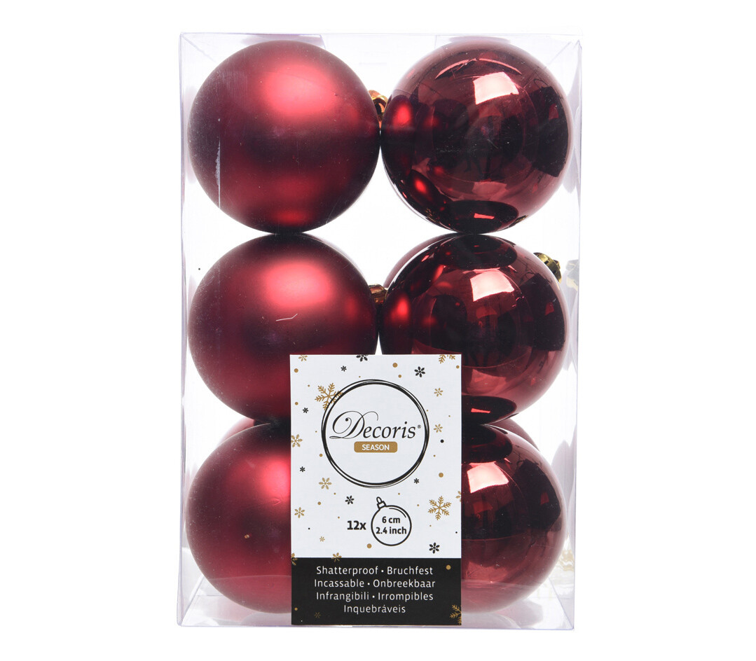 Boule en plastique 6 cm (Brillant - Mat) (Paquet de 12) Bordeaux