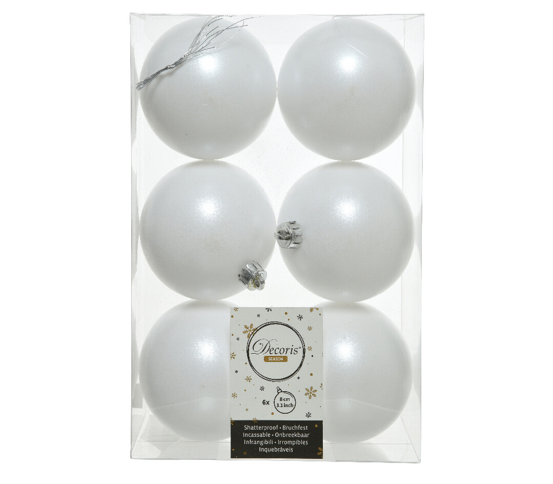Boule en plastique 8 cm (Brillant - Mat) (Paquet de 6) Blanc d'hiver