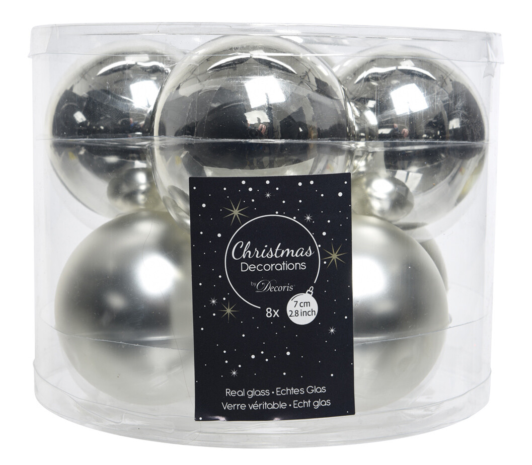 Boule en verre 7 cm (Brillant - Mat) (Paquet de 8) Argent