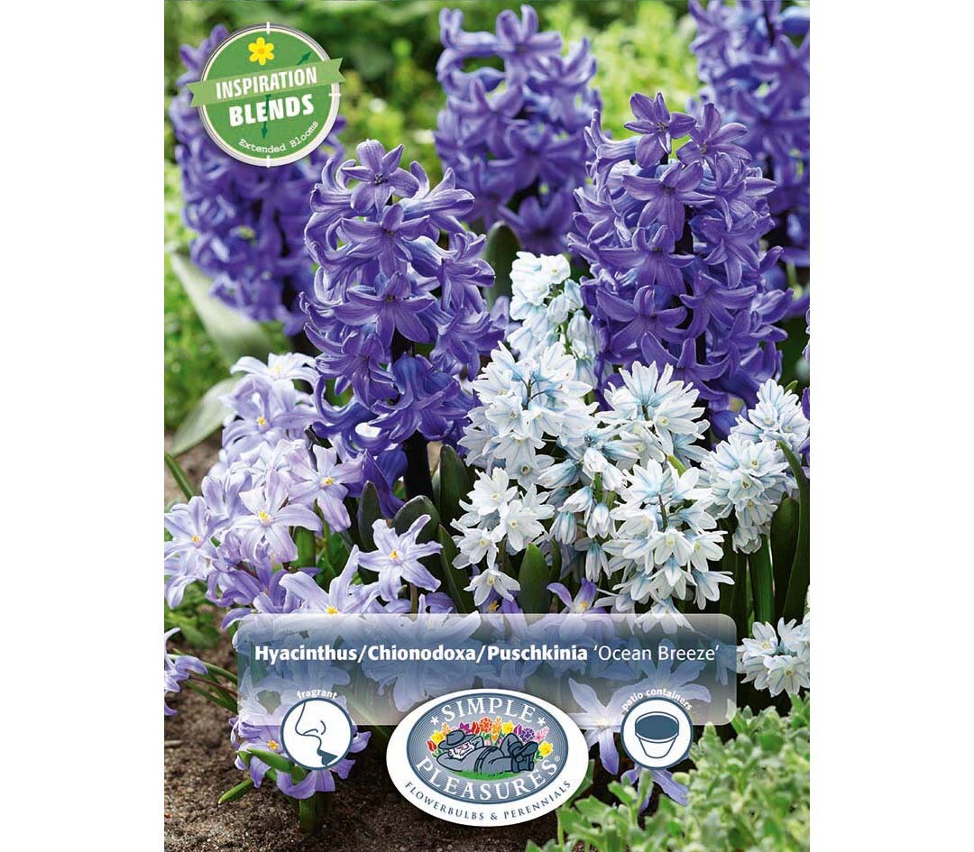 Jacinthe, Chionodoxa et Puschinka Ocean Breeze (Période de floraison étendue - Inspiration Blend) (Paquet de 45 bulbes)