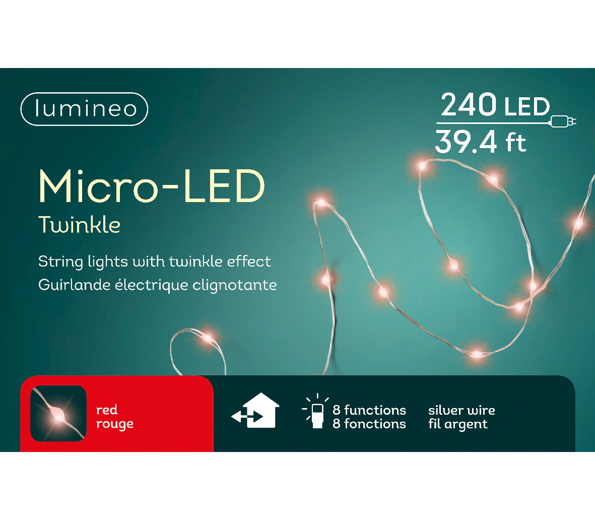 Lumières Extérieures DEL Micro 1000 lumières 74' Rouge avec fil vert 79,99$