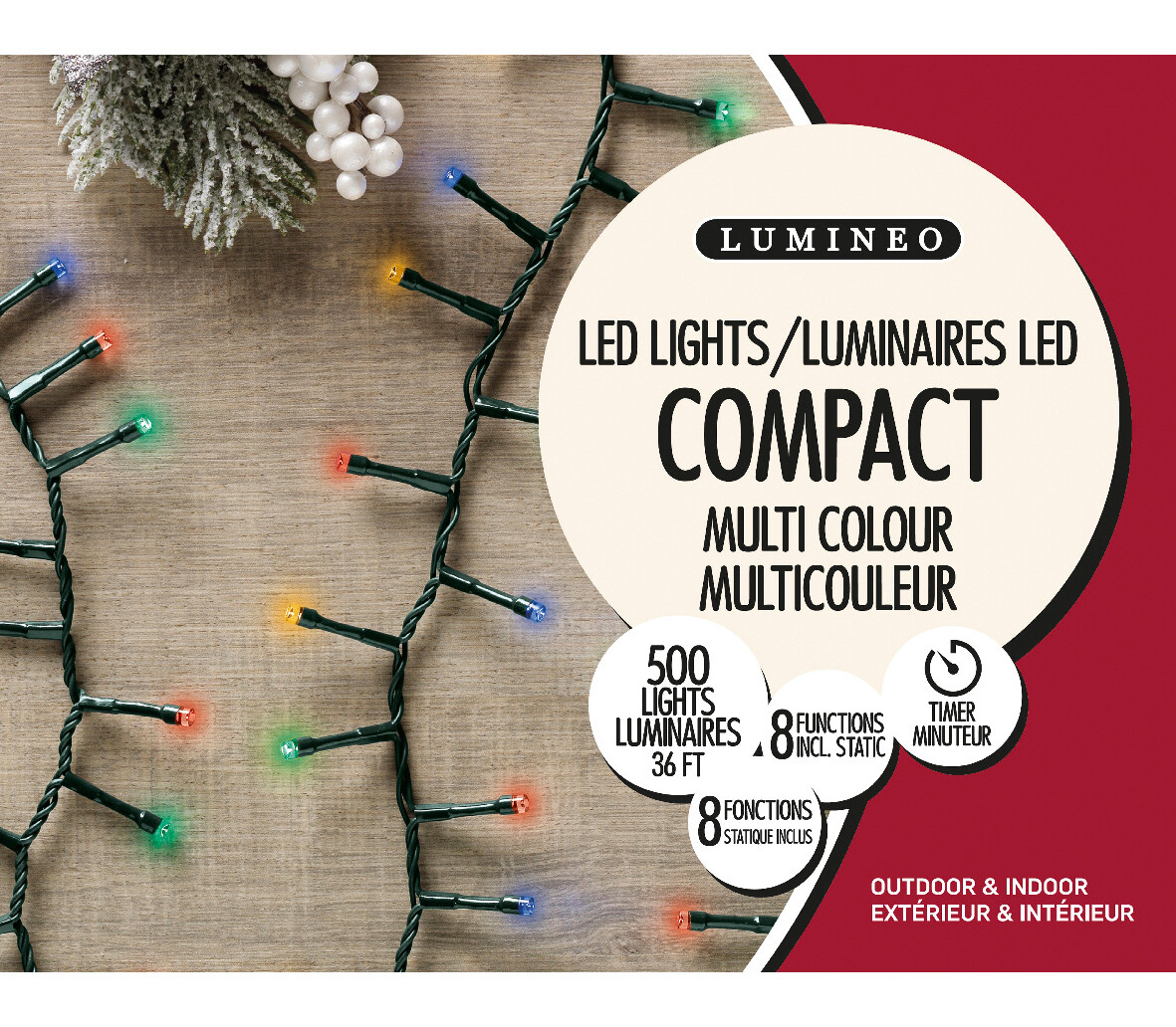 Lumières Extérieures DEL Cerise 500 lumières 36' Multicolores avec fil noir 69,99$