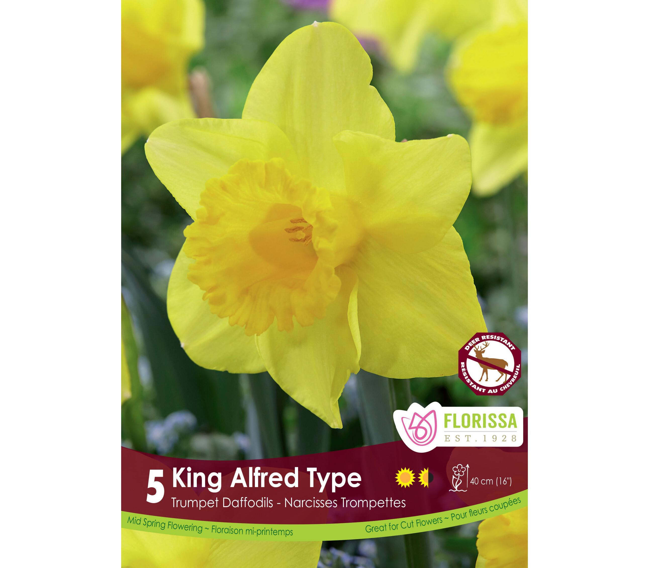 Narcisse Jaune King Alfred (Trompette) (Zone : 3) (Paquet de 5 bulbes)