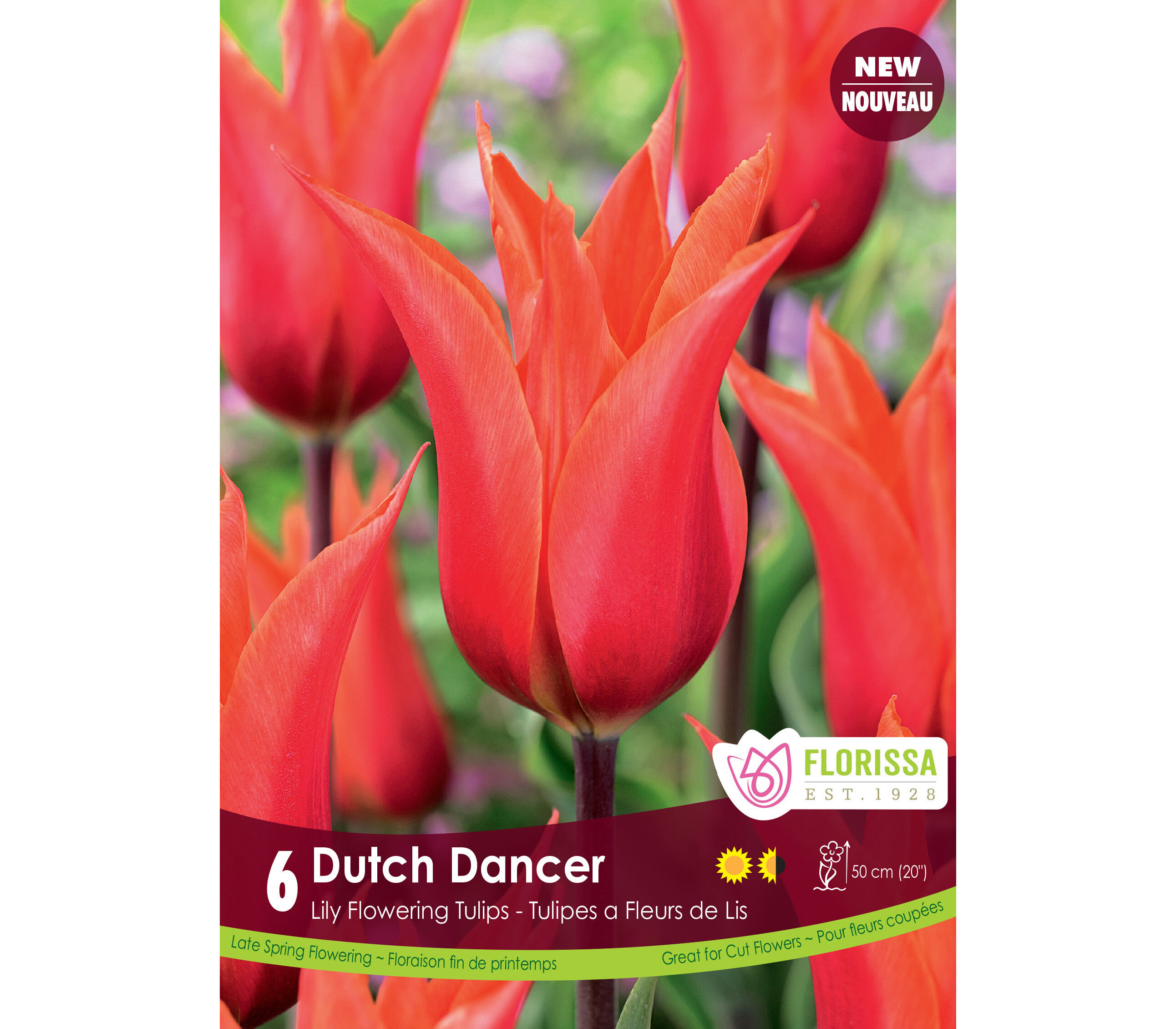 Tulipe Dutch Dancer (Fleur de lys) (Zone : 3) (Paquet de 6 bulbes)