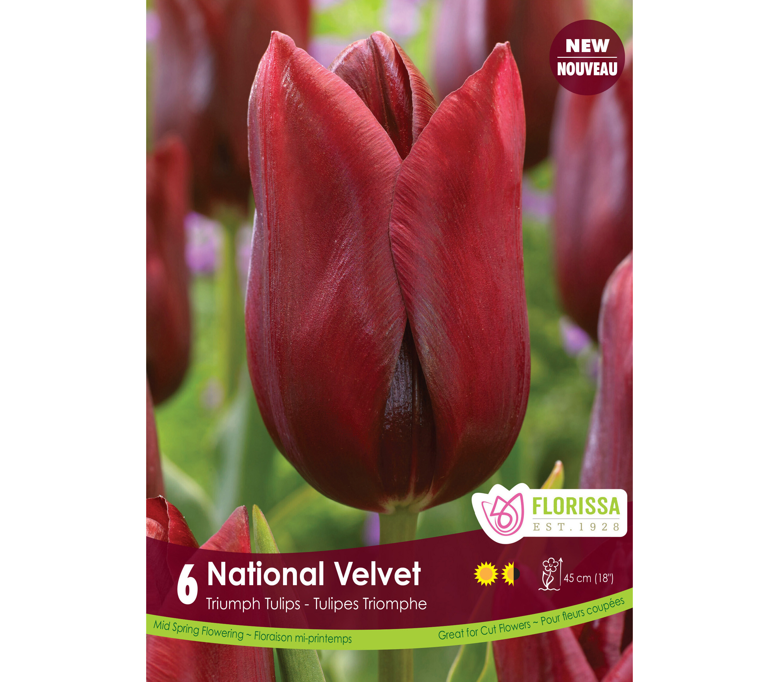 Tulipe National Velvet (Triumph) (Zone : 3) (Paquet de 6 bulbes)